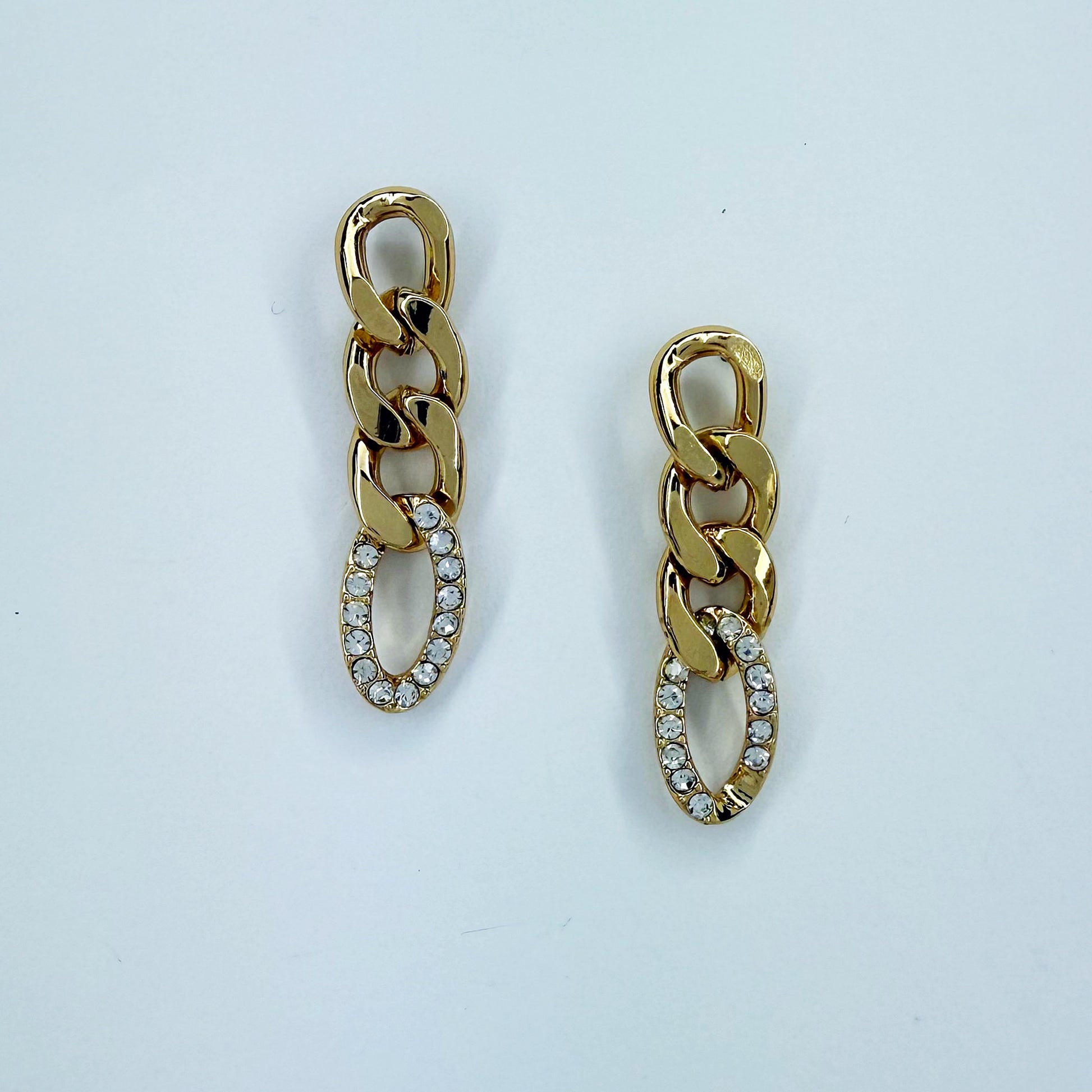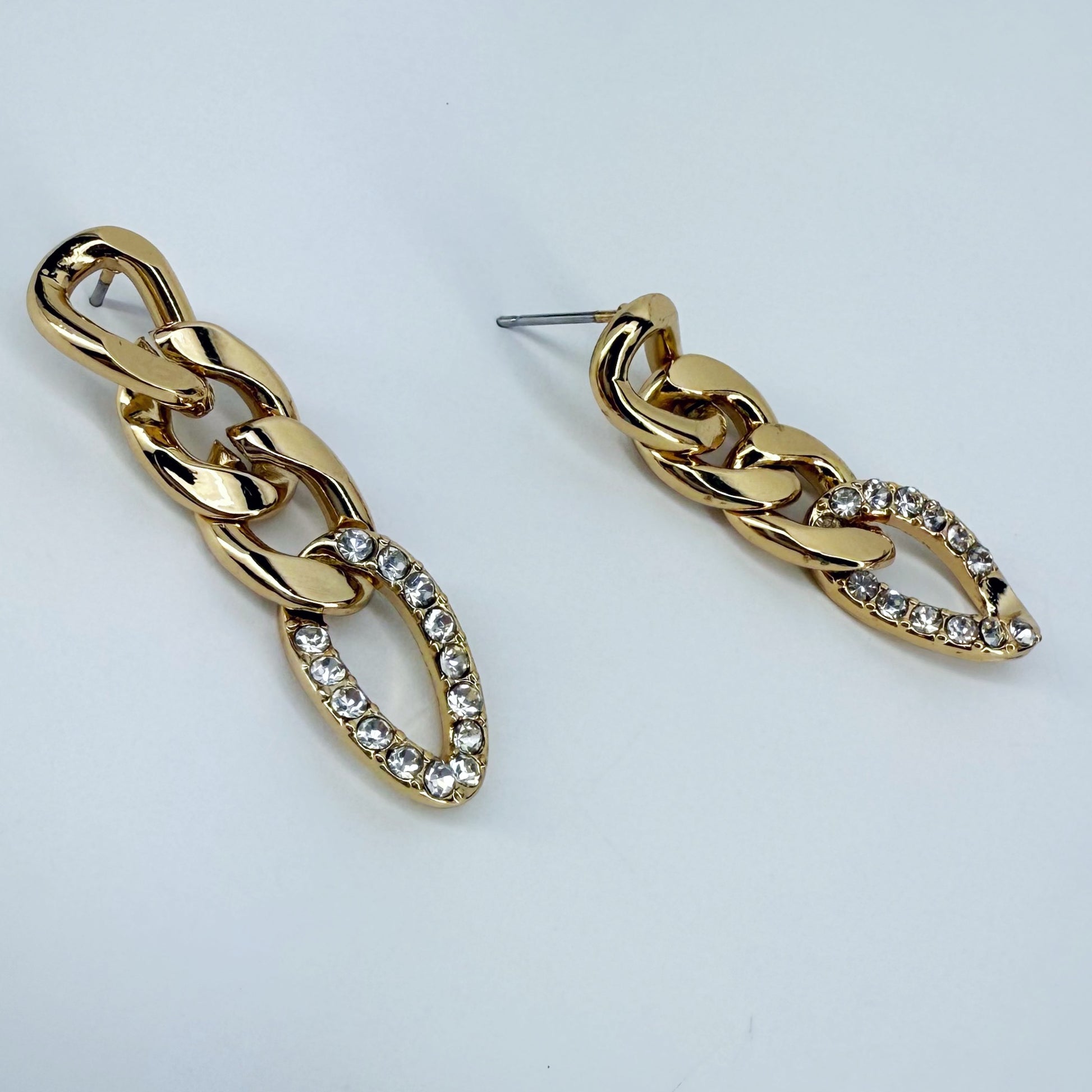 Add a touch of sophistication with these small post-back earrings featuring a gold-finished Cuban link design accented by dazzling clear rhinestones.