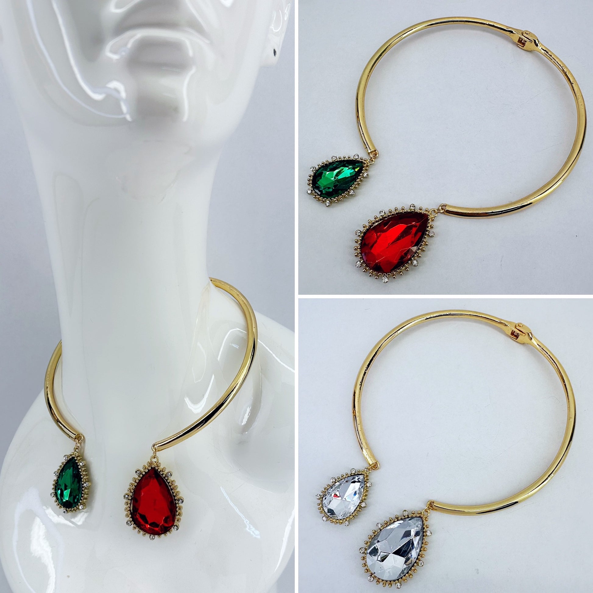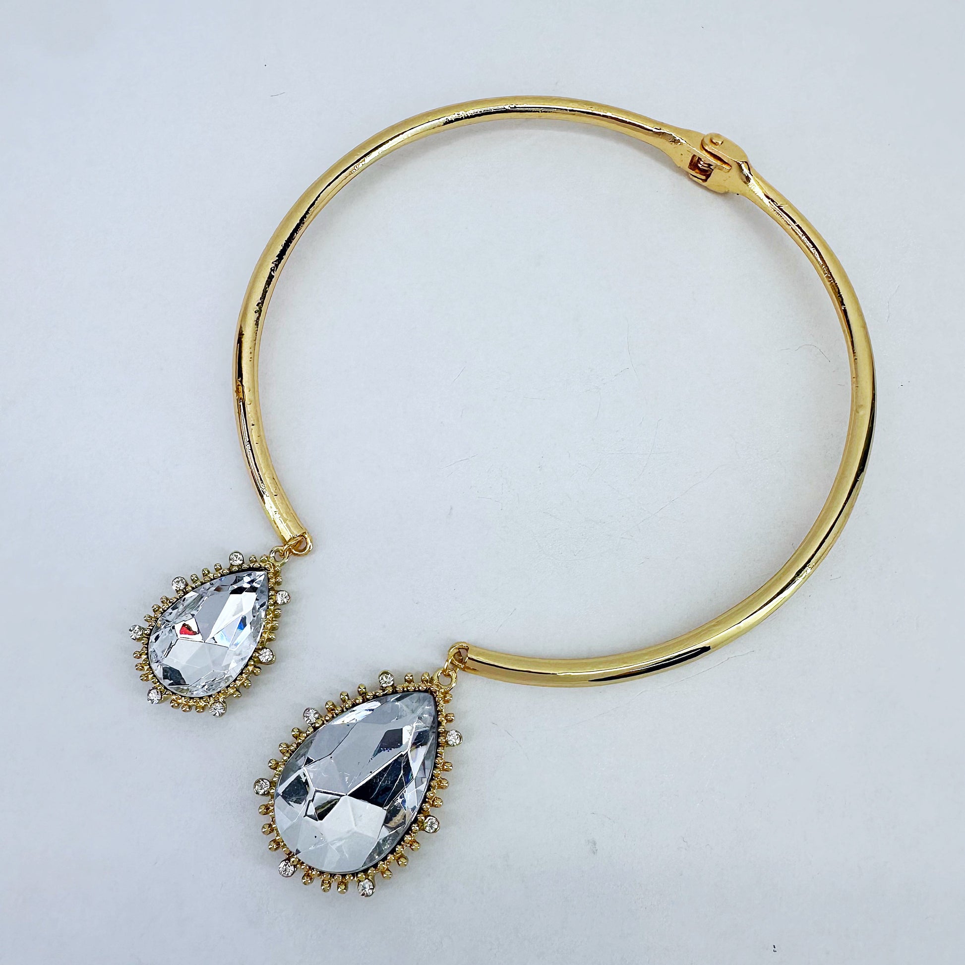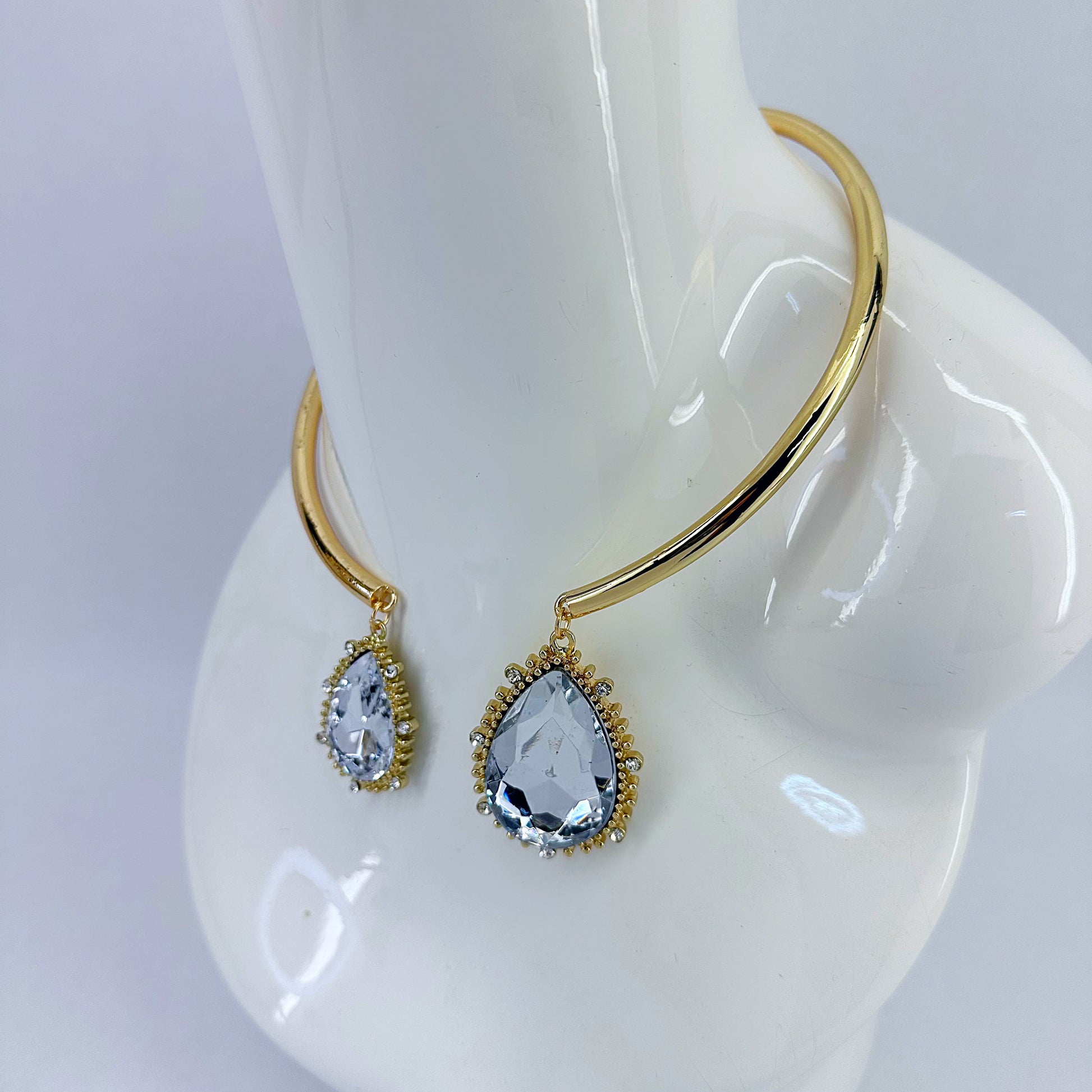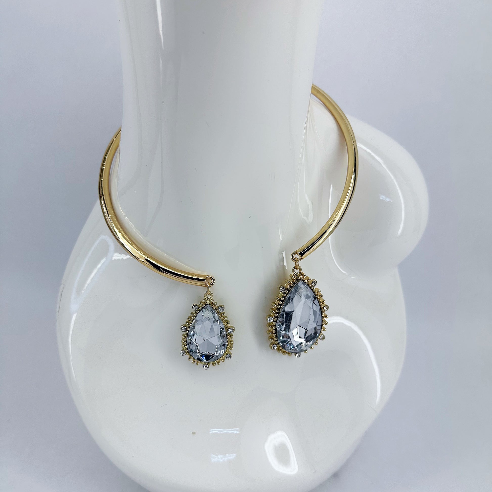 Open Choker Gold Metal Drop Stones Pendant Dangle