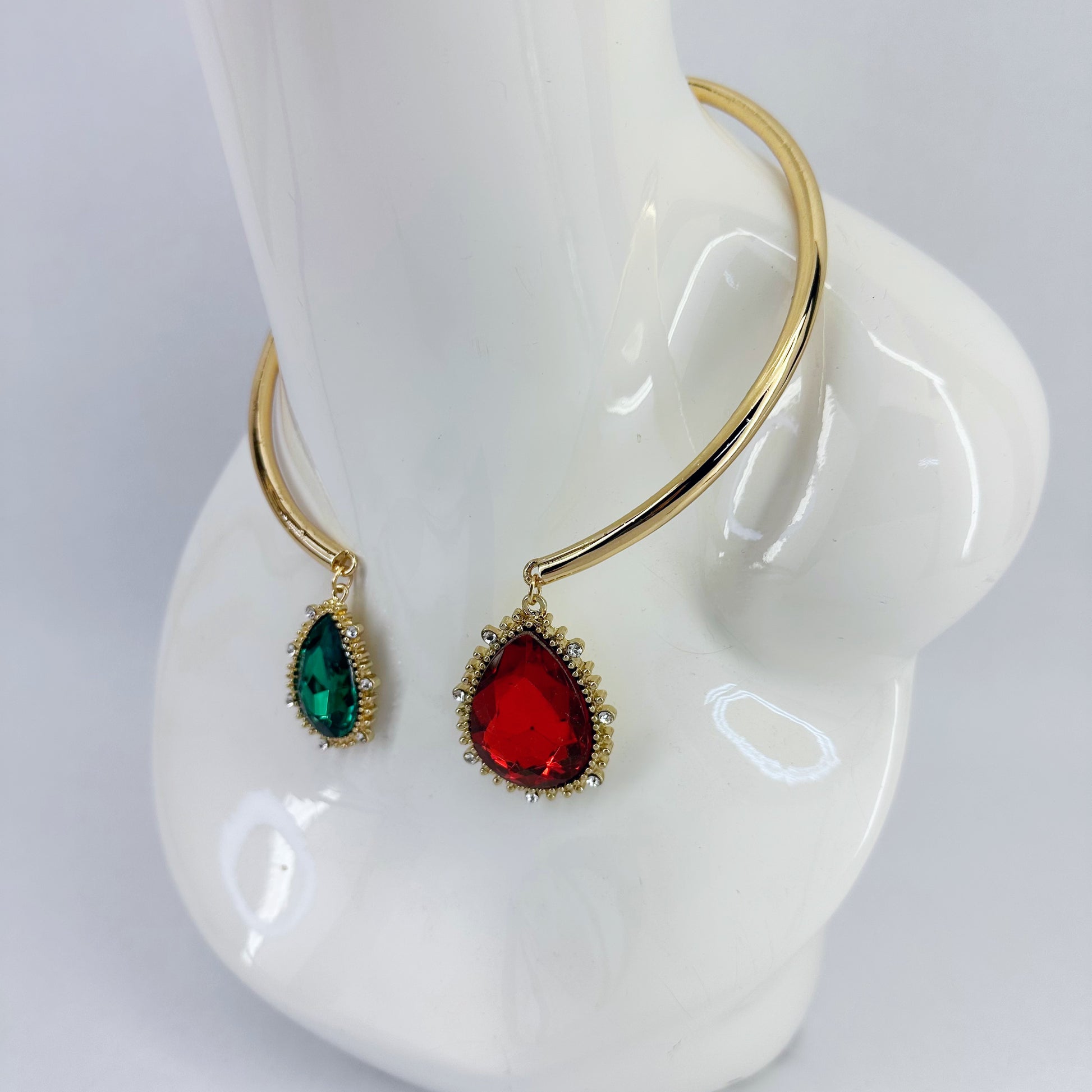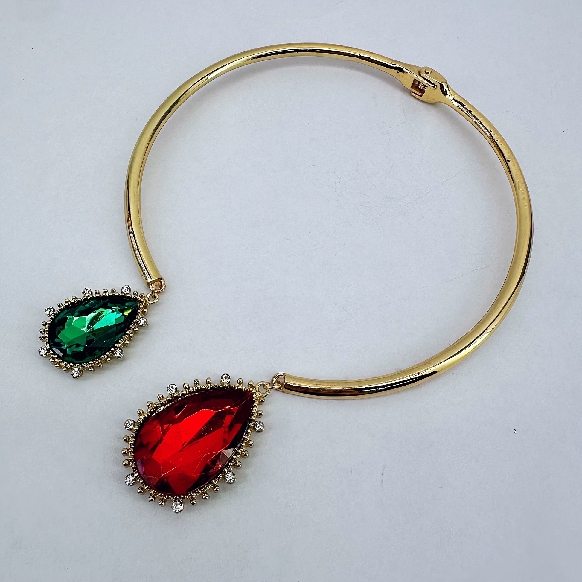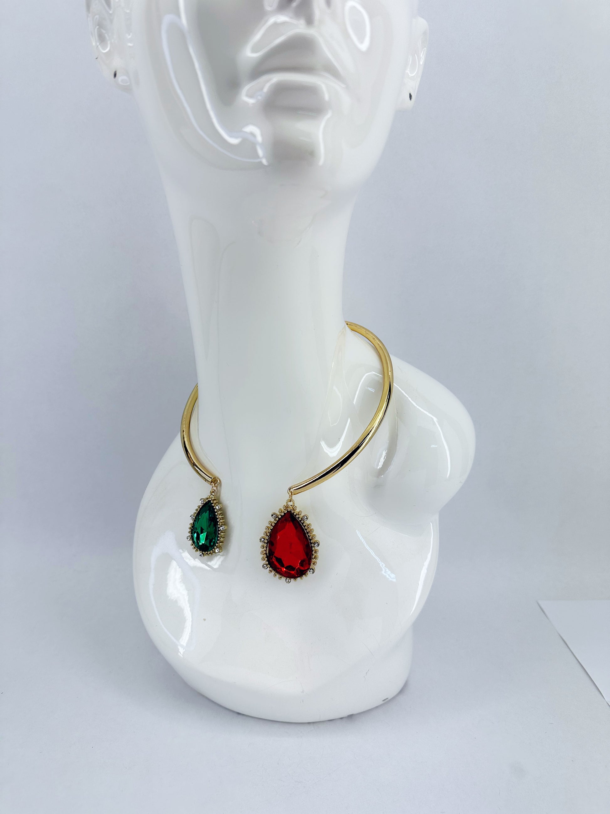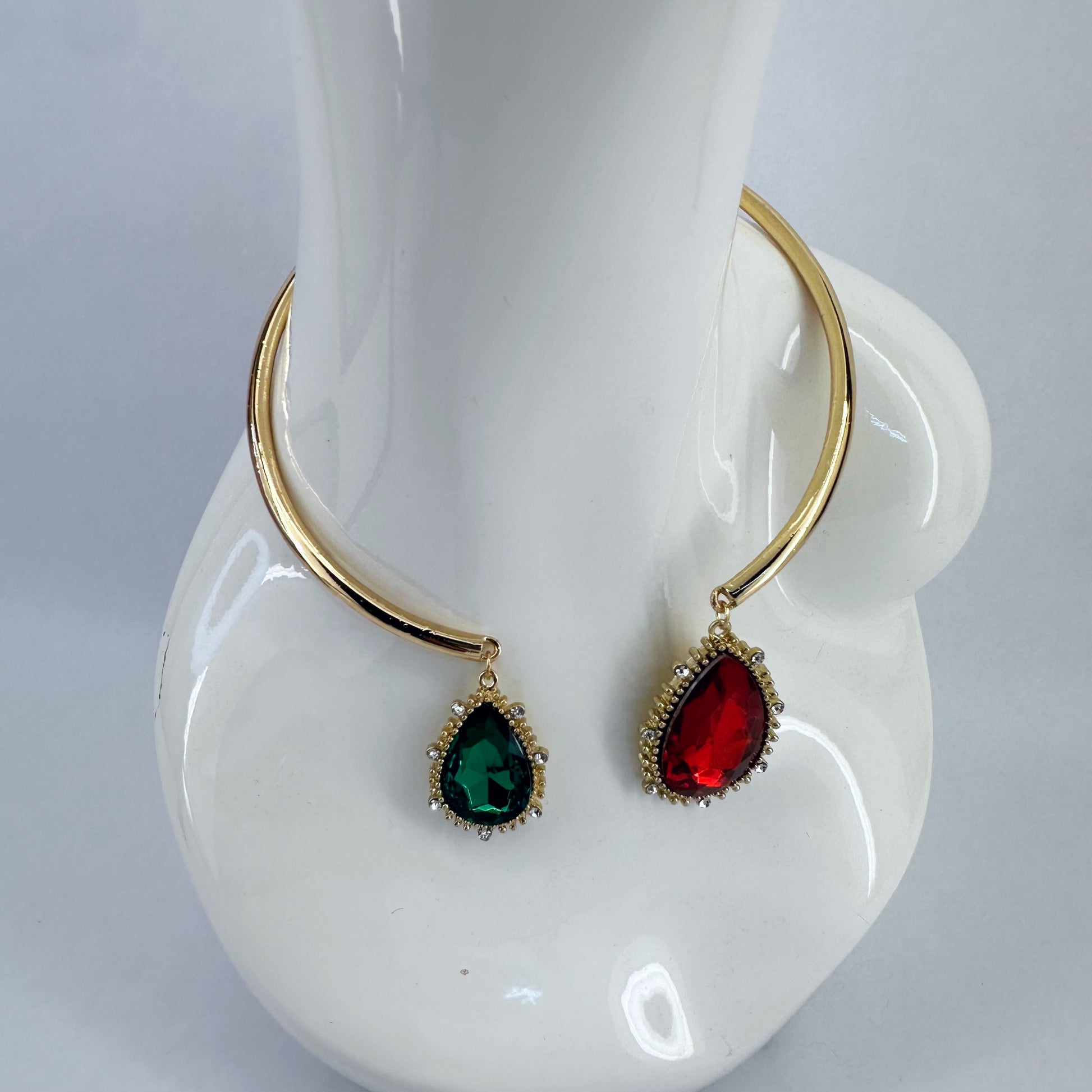 Open Choker Gold Metal Drop Stones Pendant Dangle