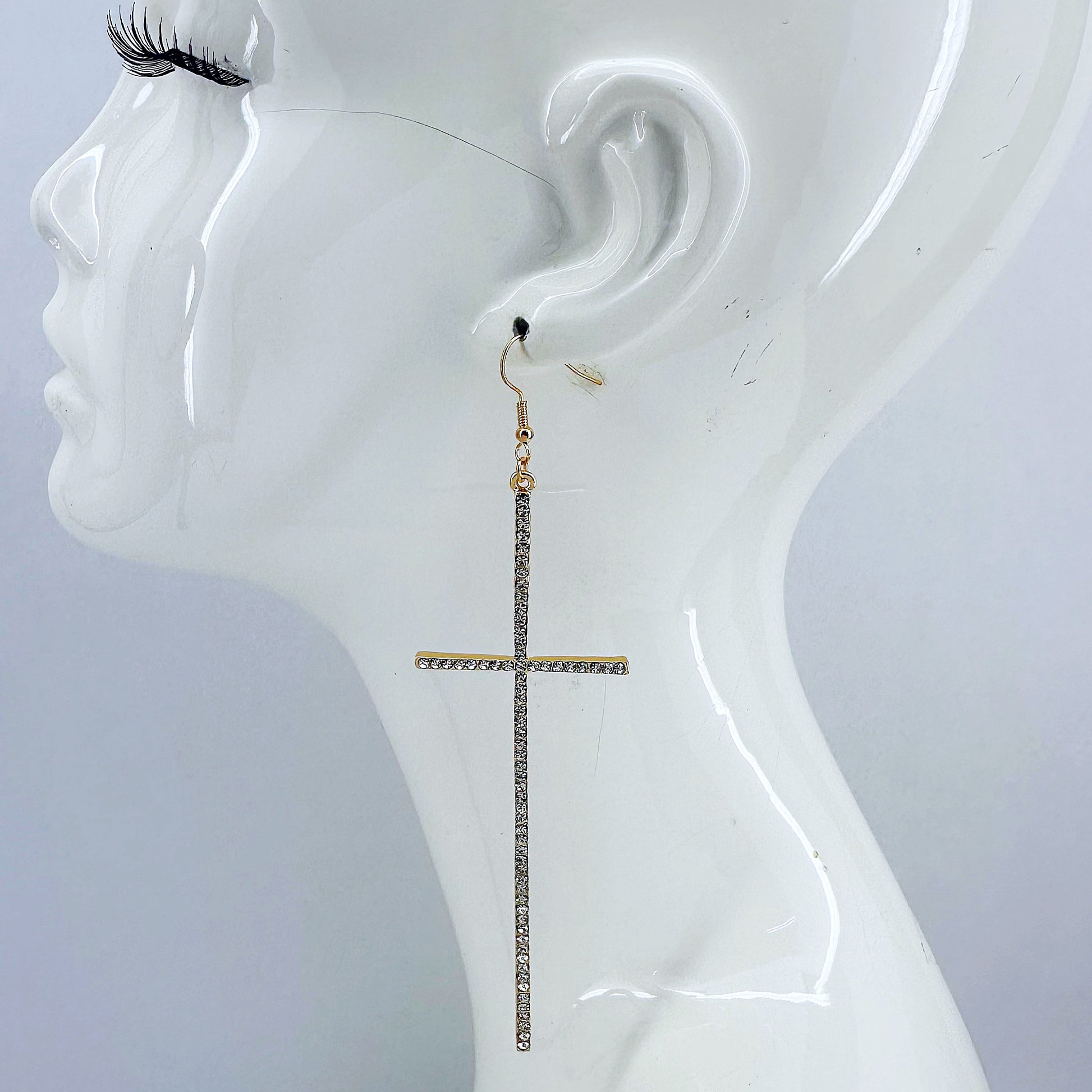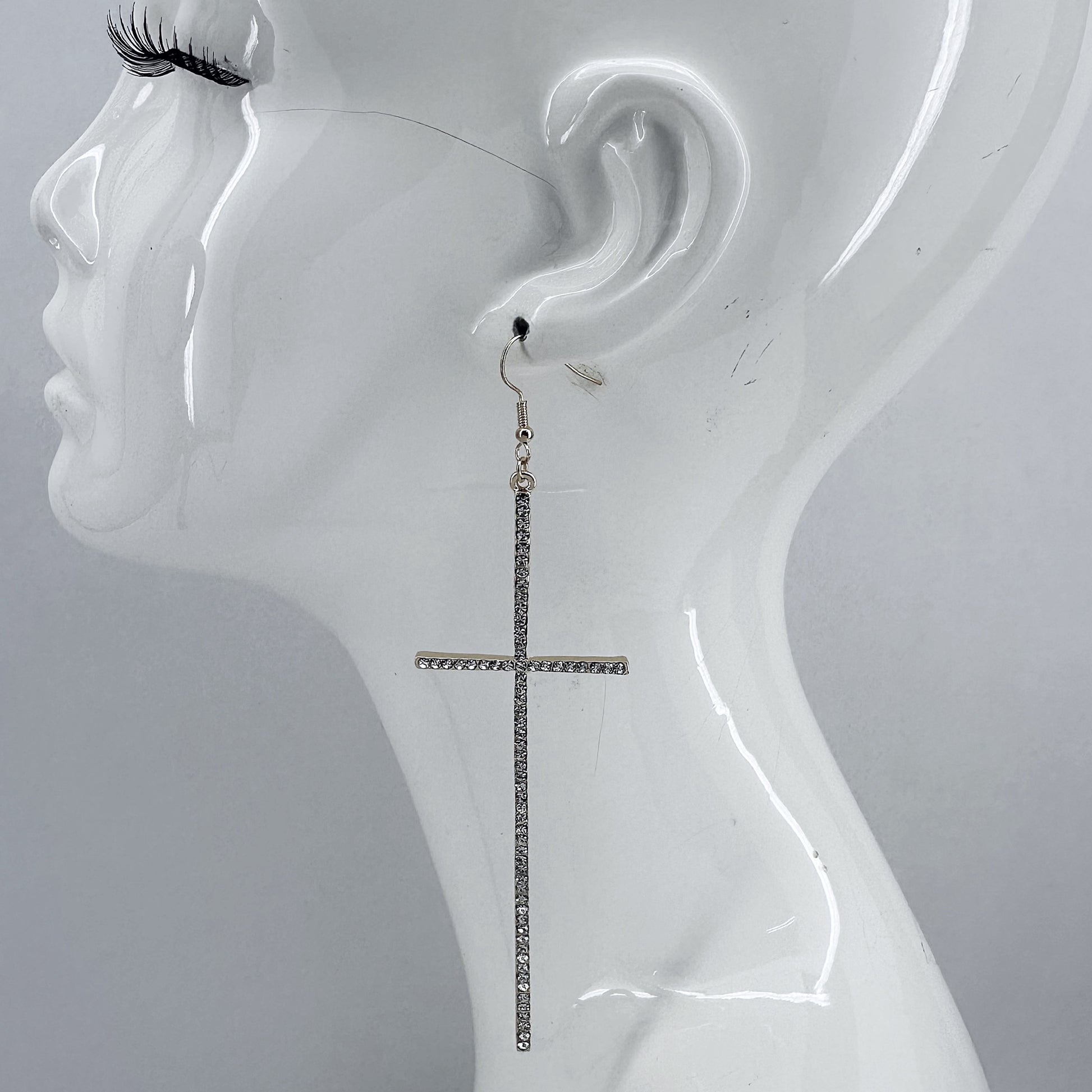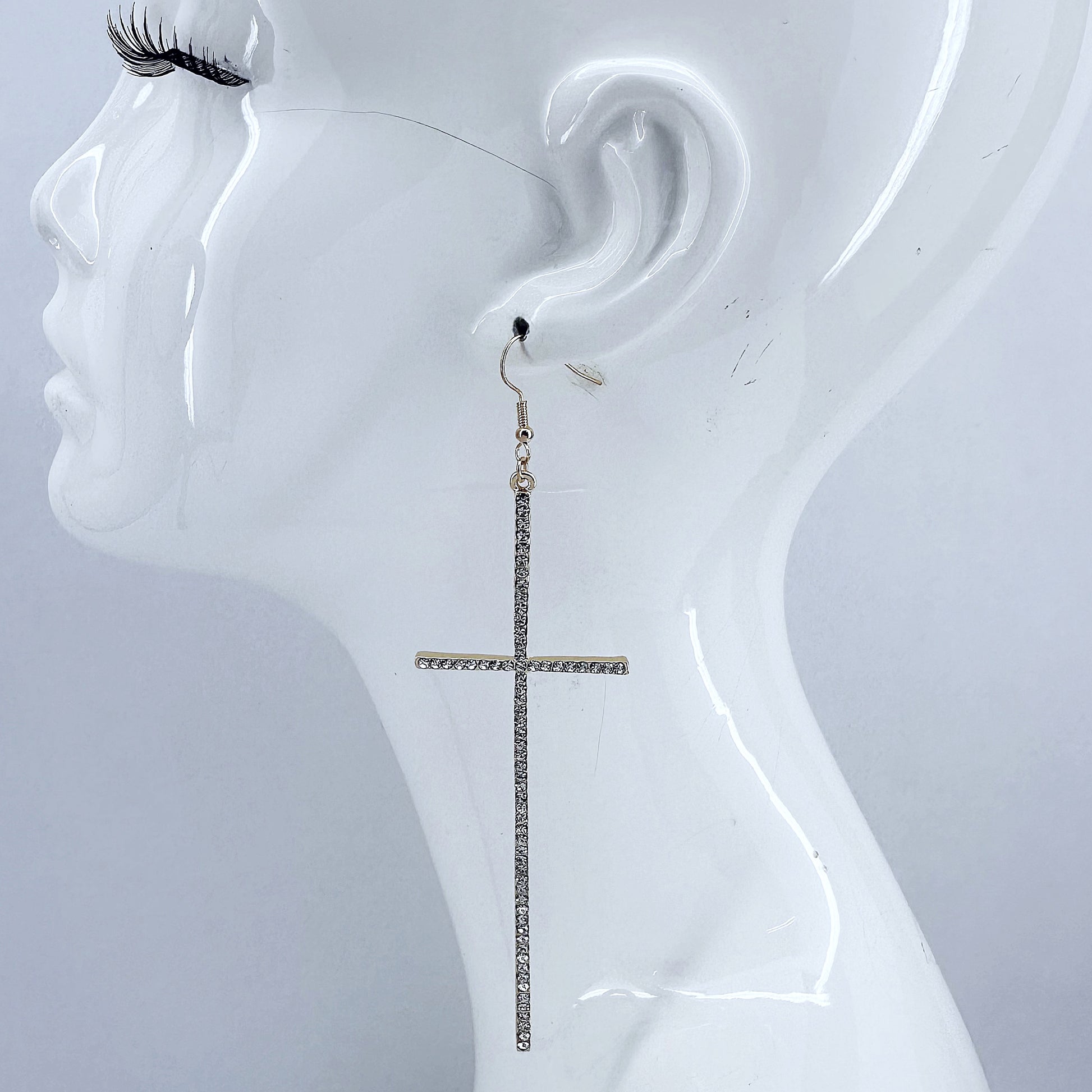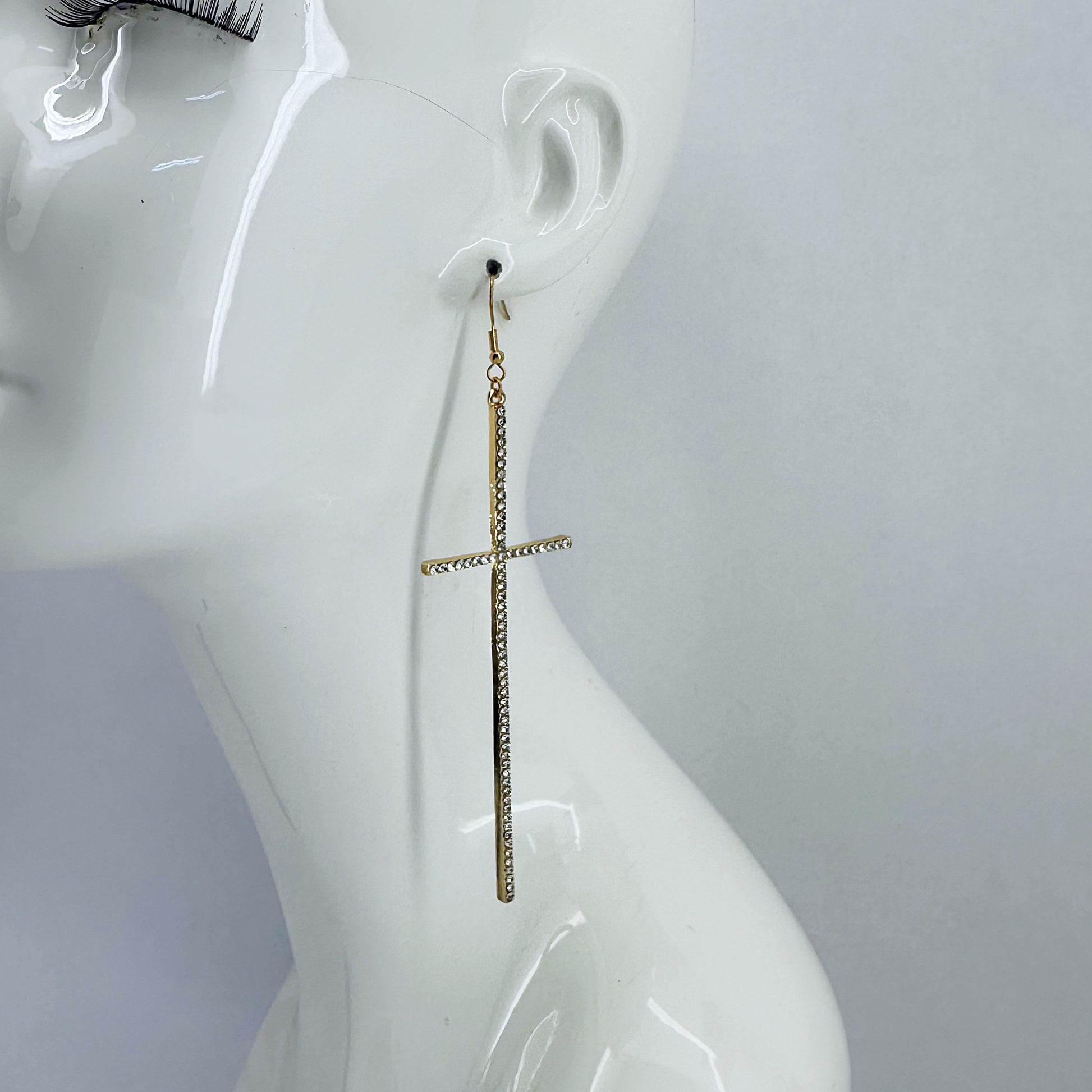 Earring Long Pave Rhinestones Cross