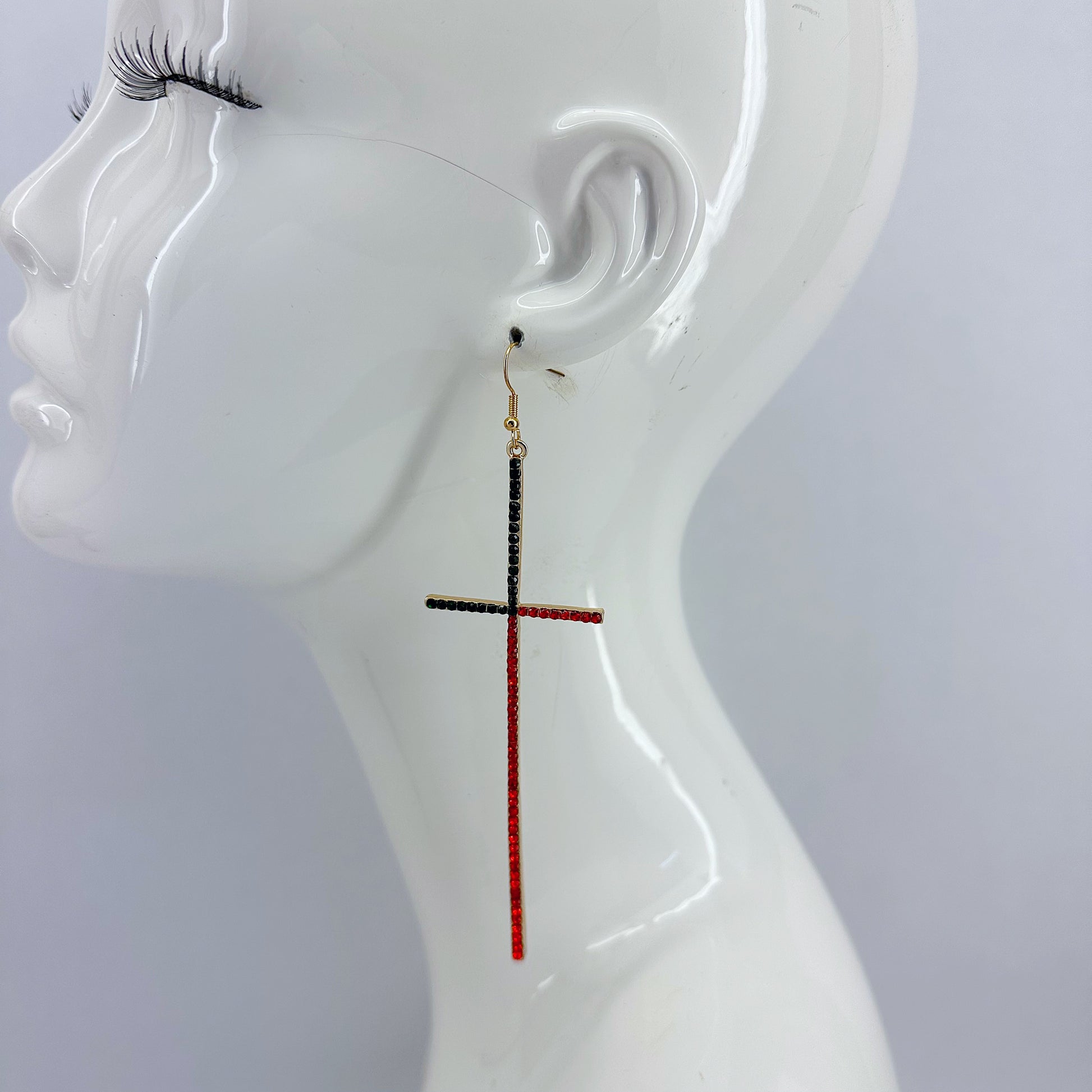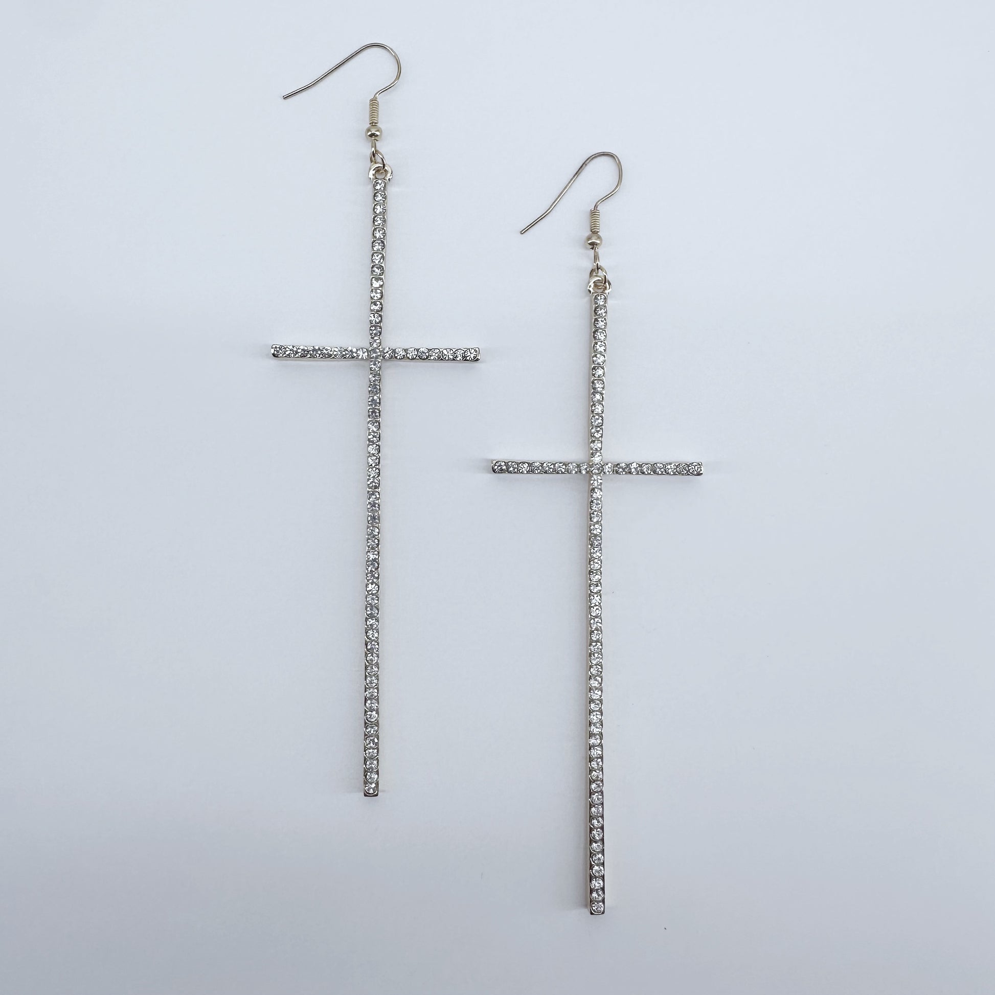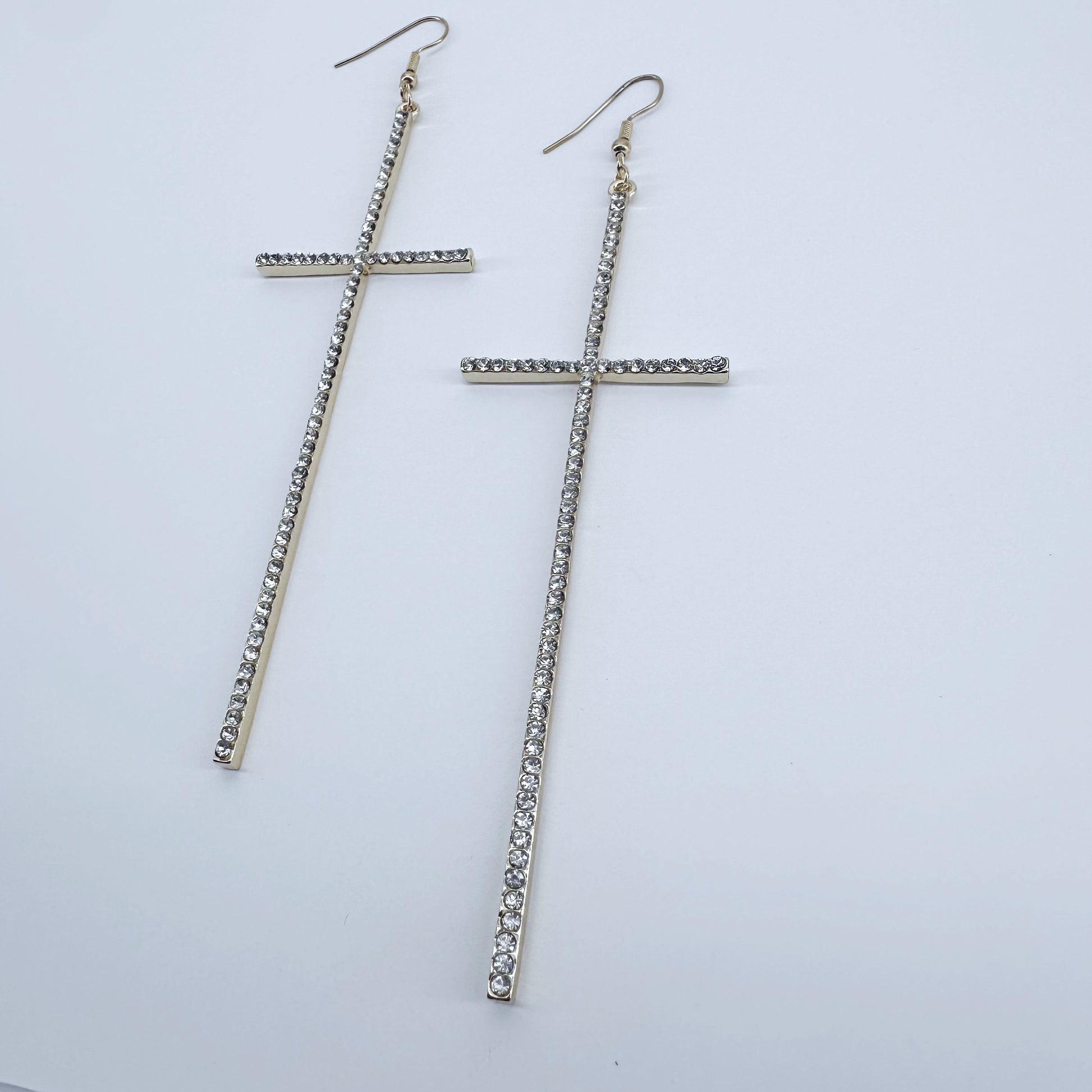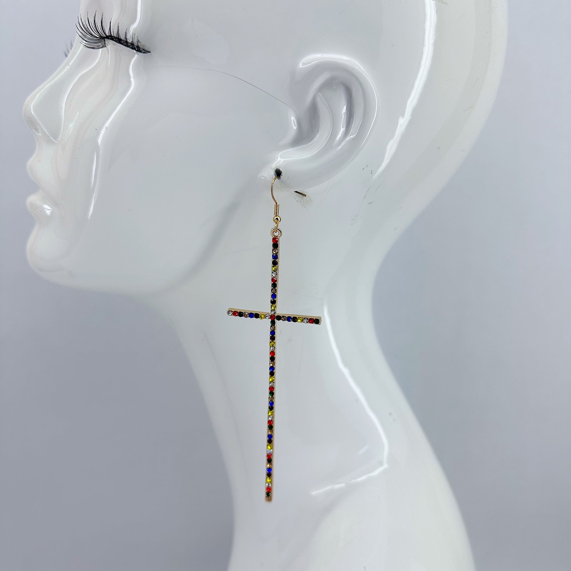 Earring Long Pave Rhinestones Cross