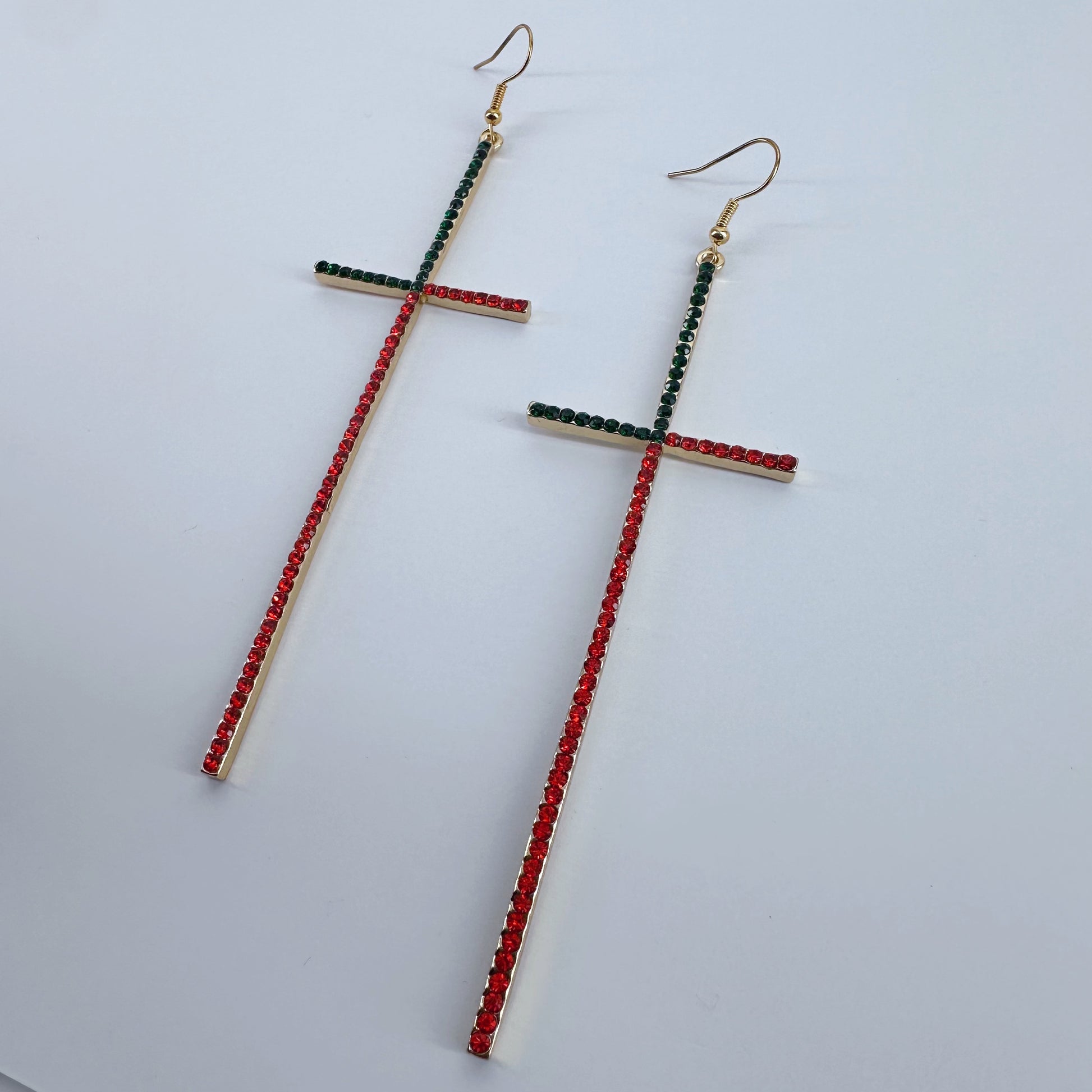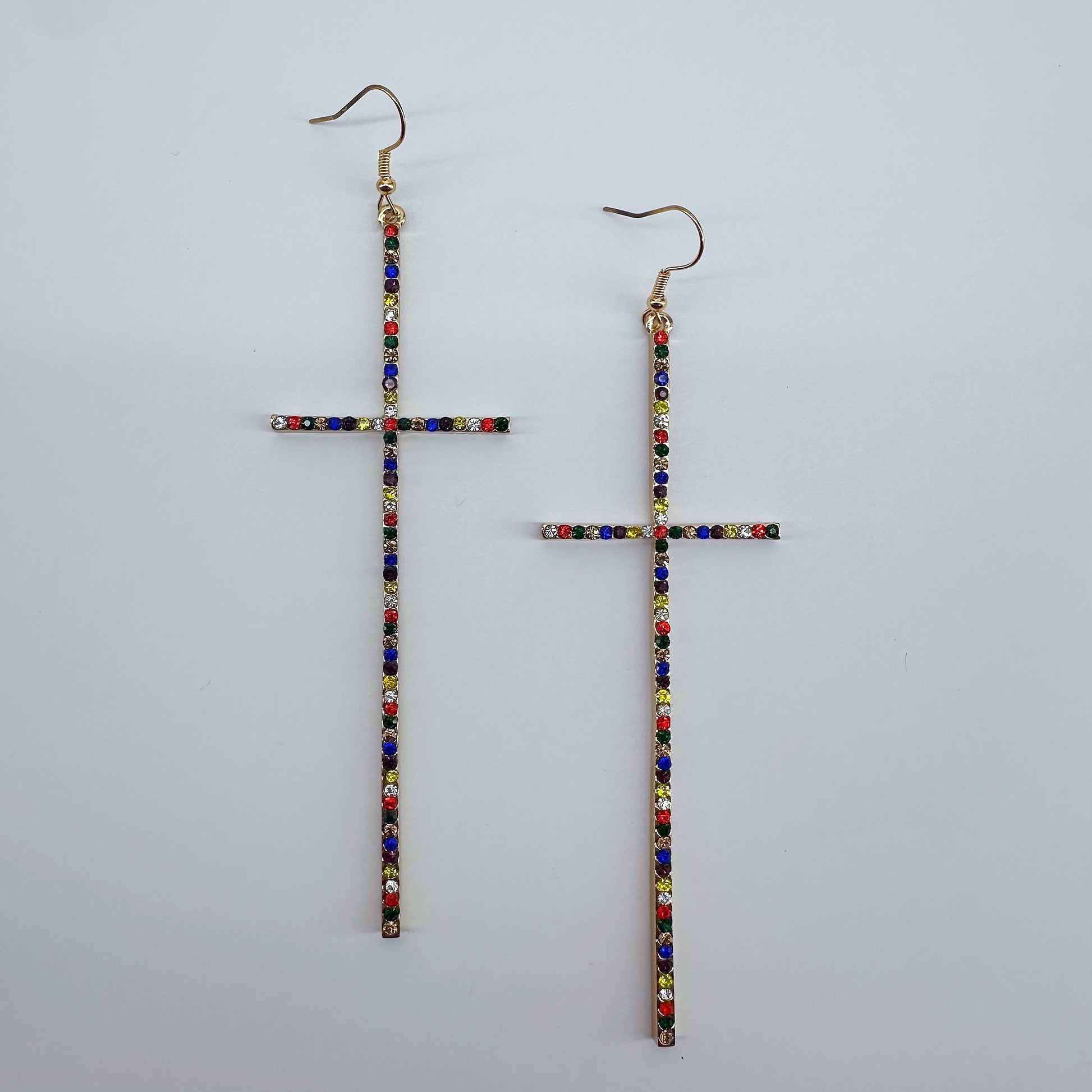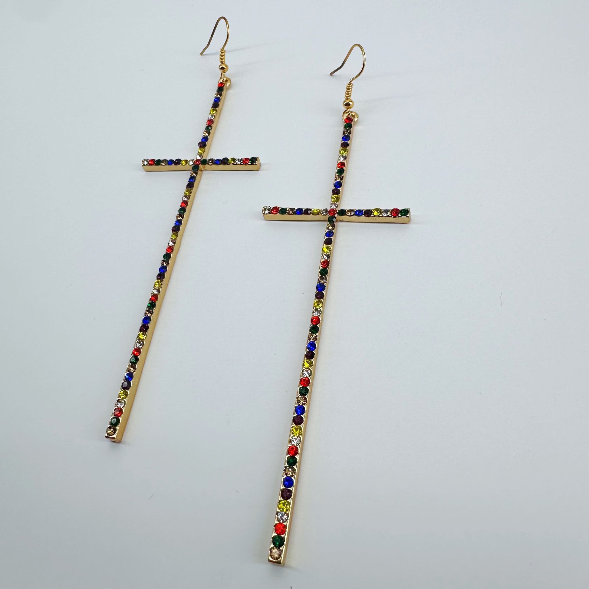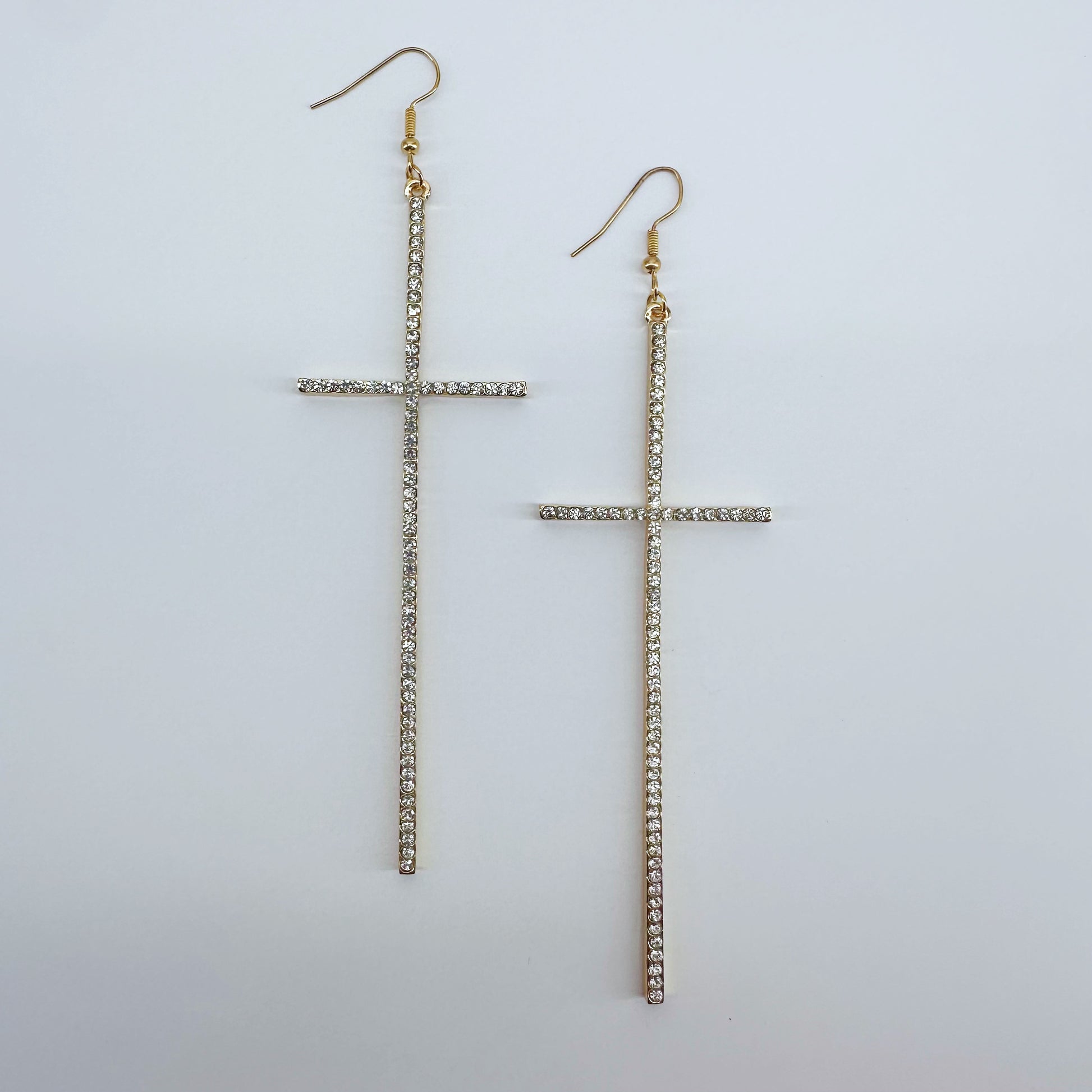 Earring Long Pave Rhinestones Cross