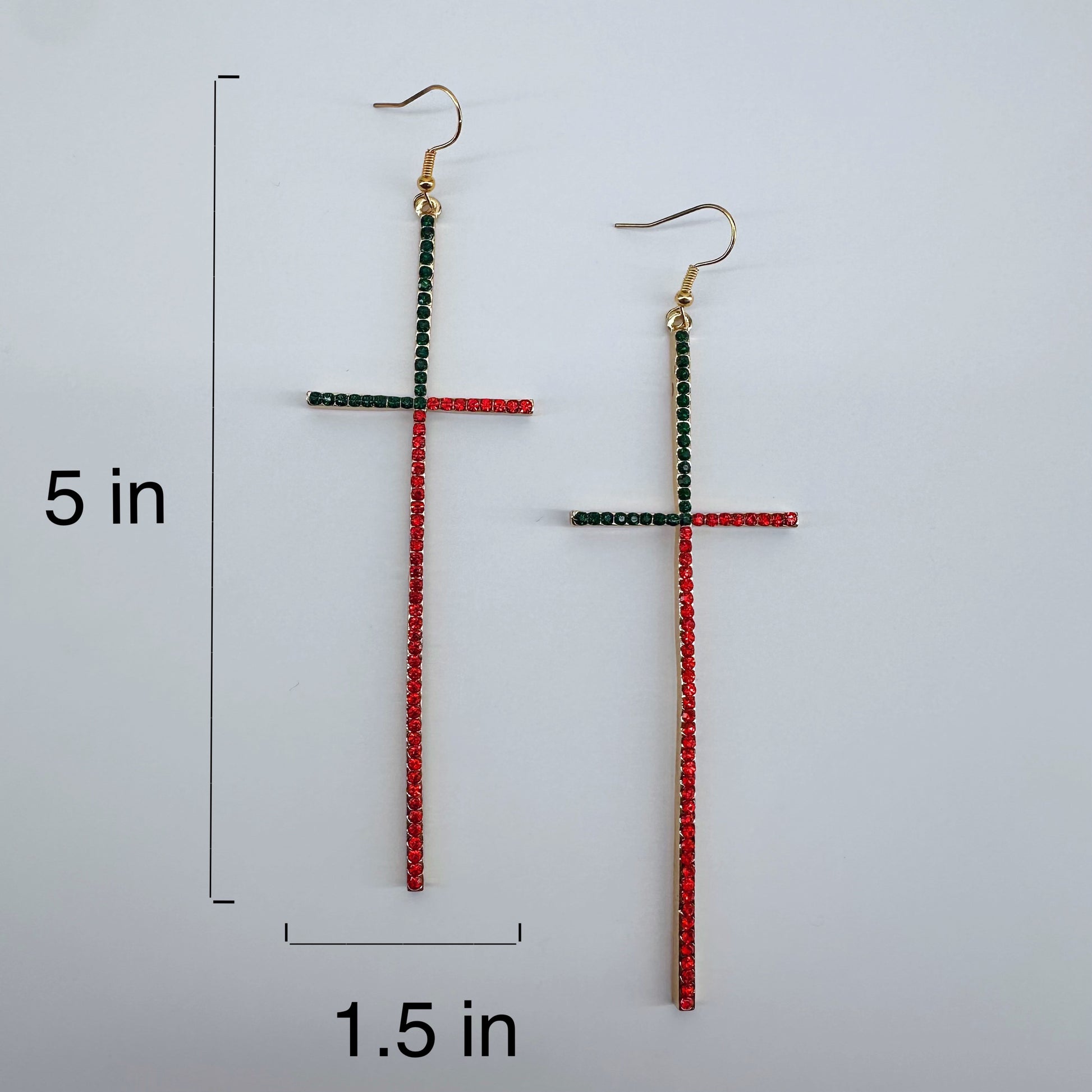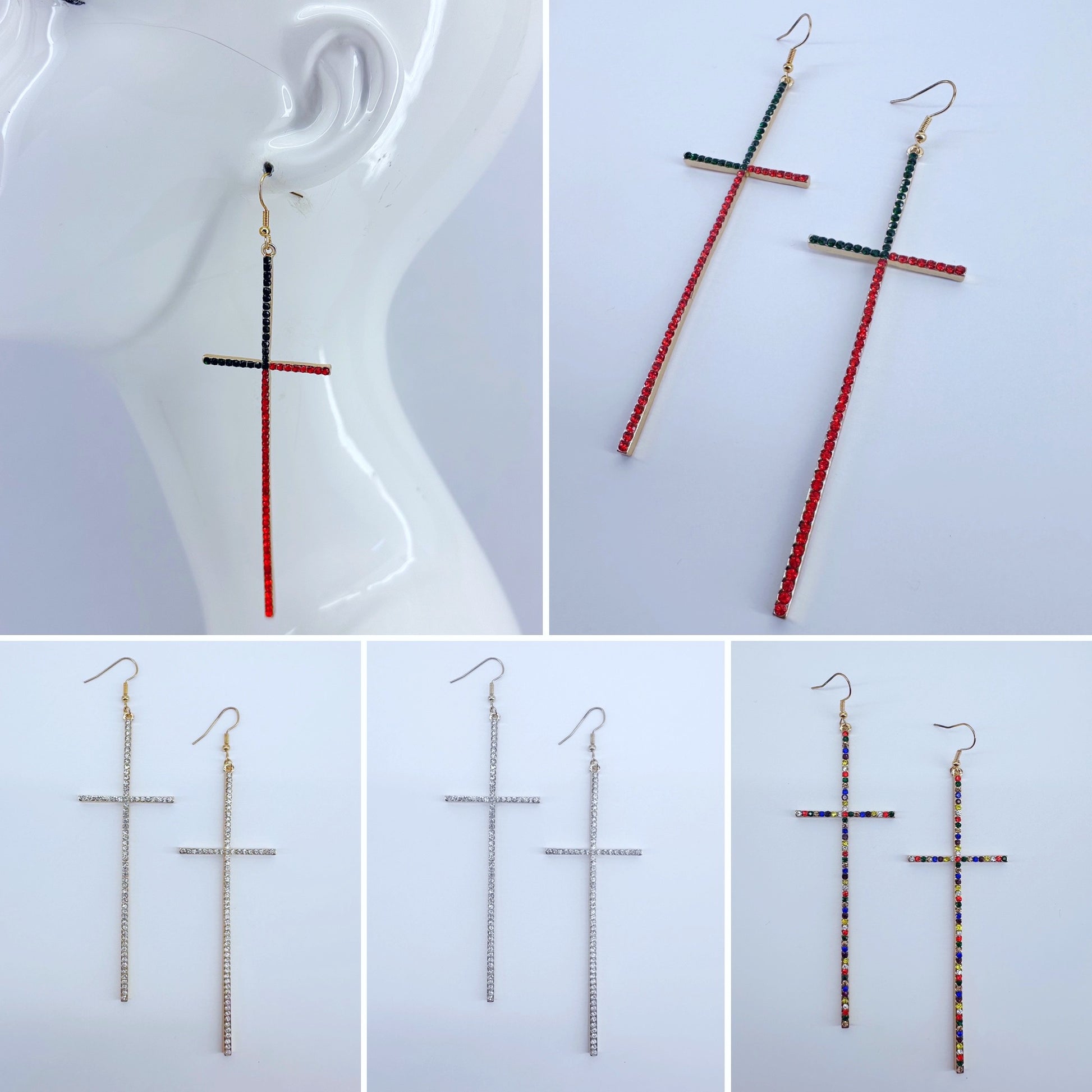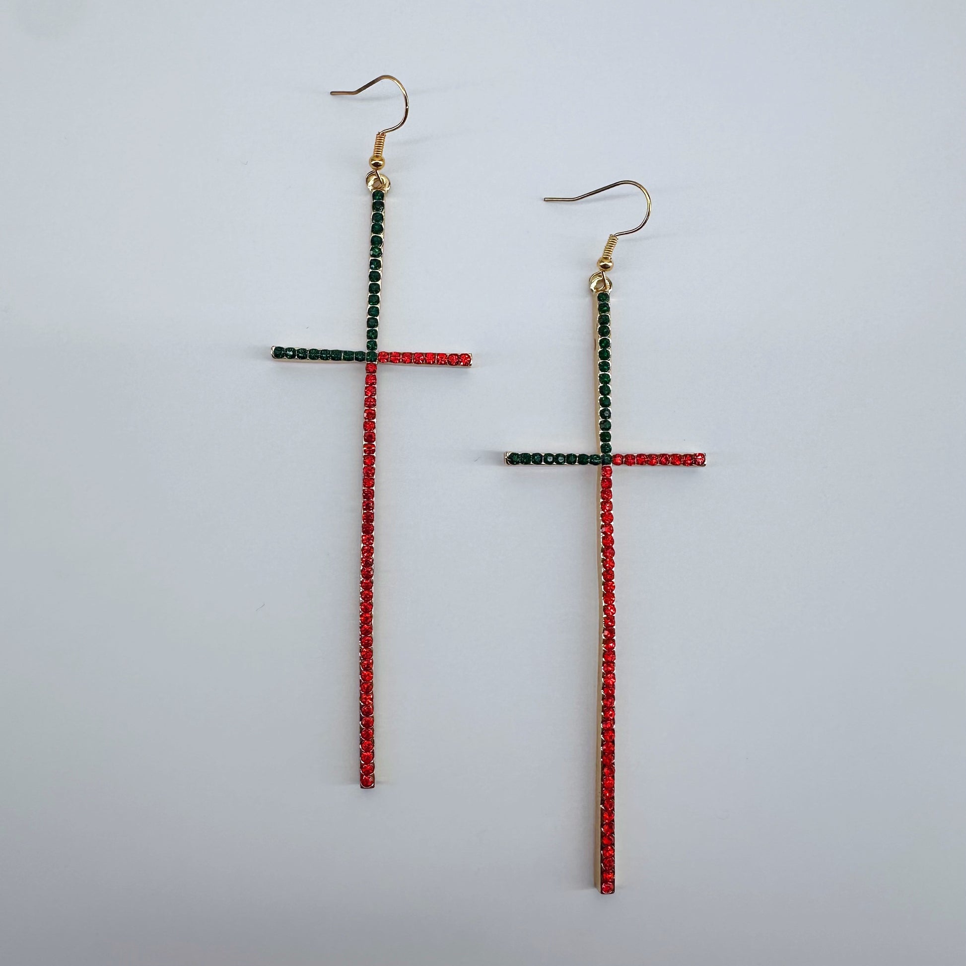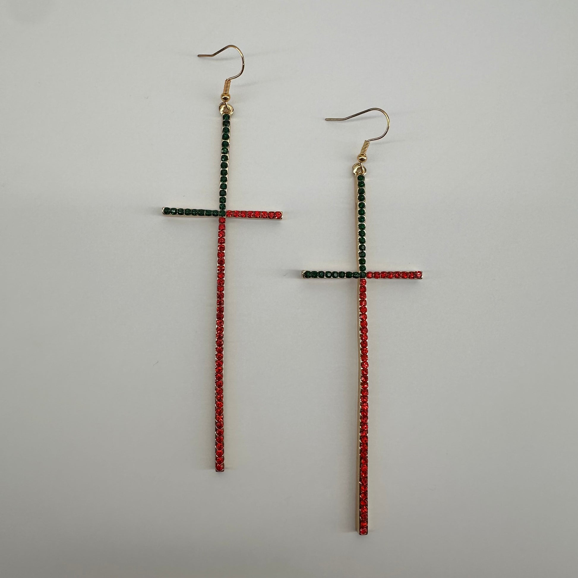 Earring Long Pave Rhinestones Cross