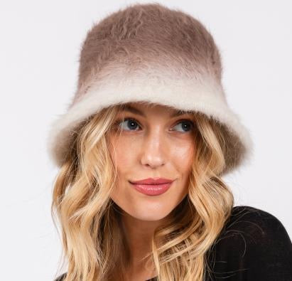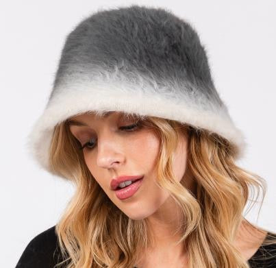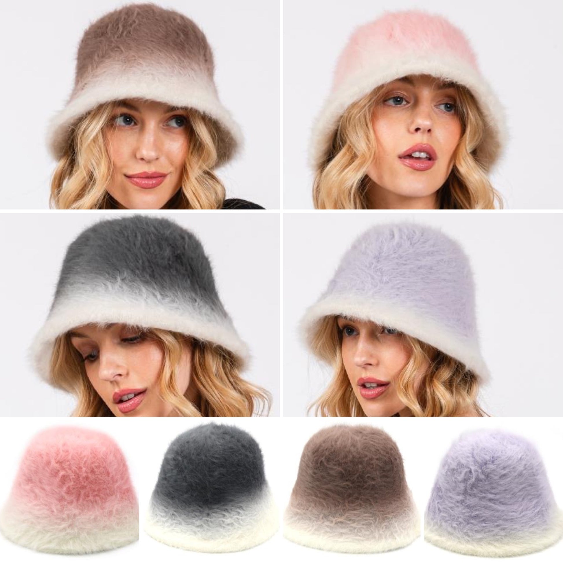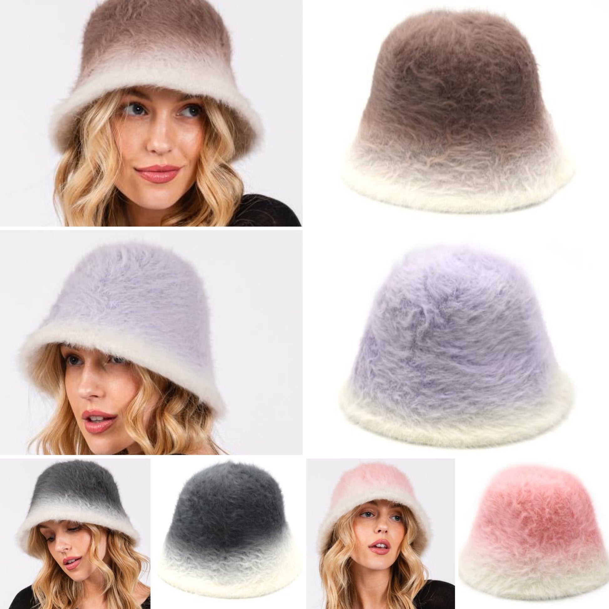 Gradident Ombre Faux Fur Bucket Hat in 4 Different colors to choose from.