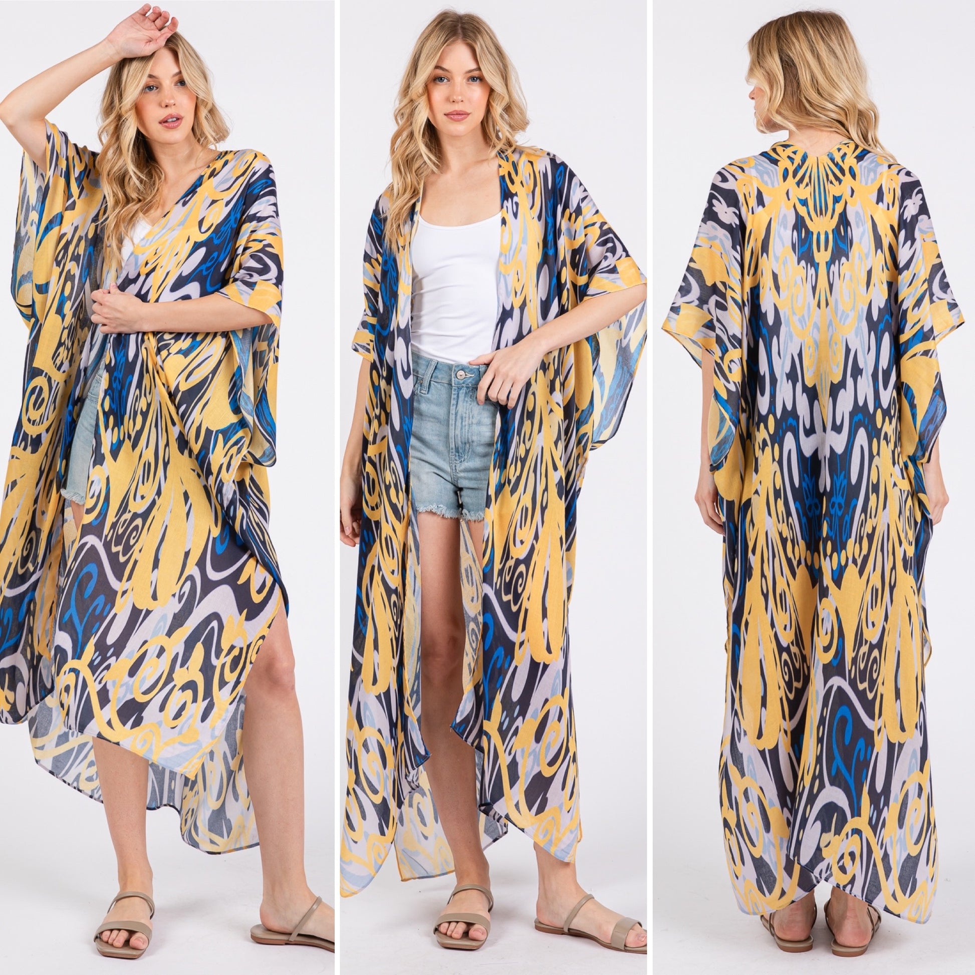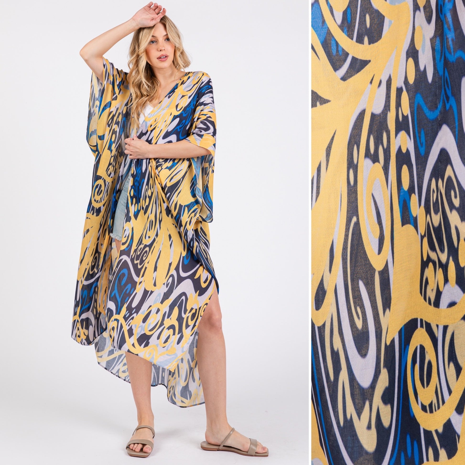 Boho Print Open Long Kimono