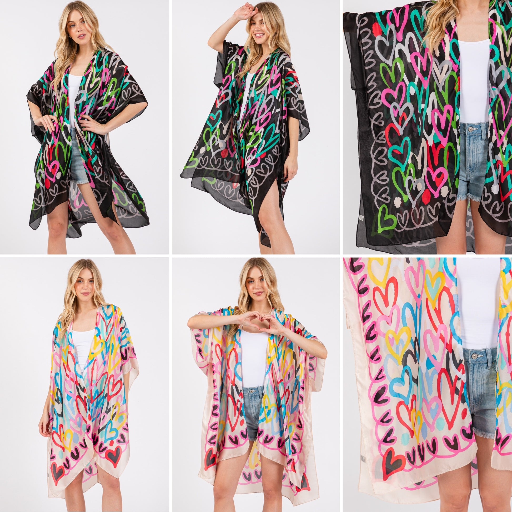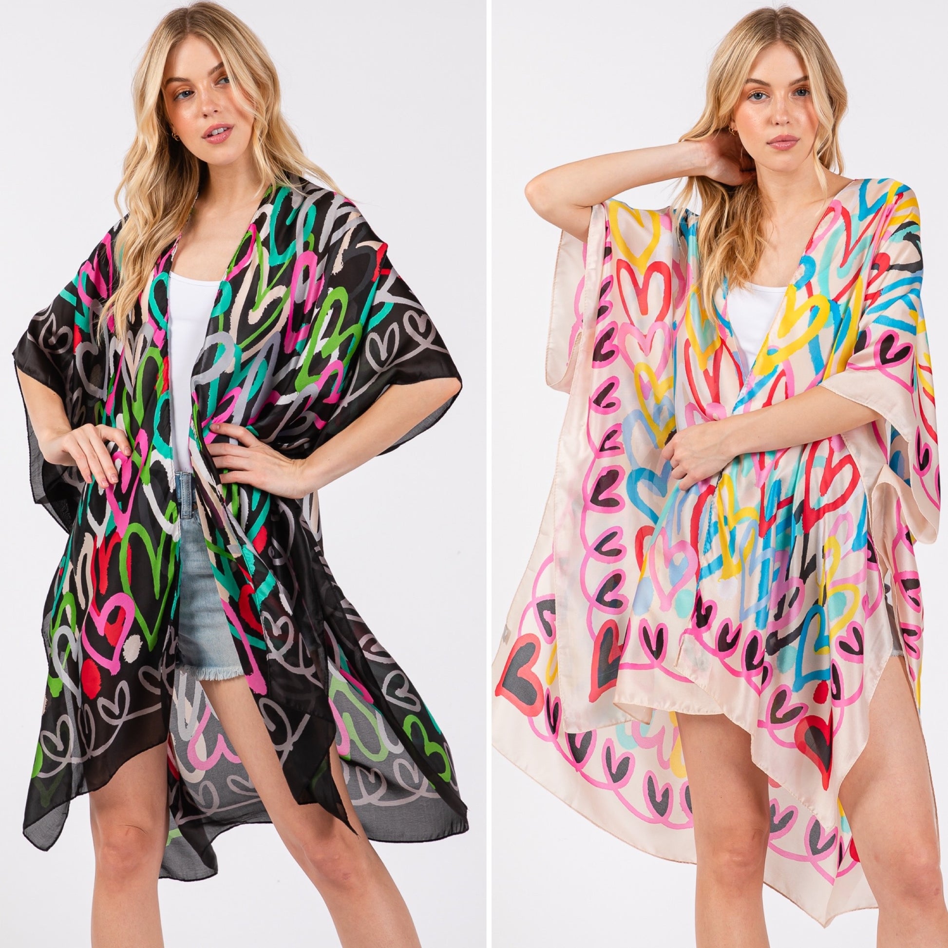 Multiolor Heart Print Silky Feel Kimono