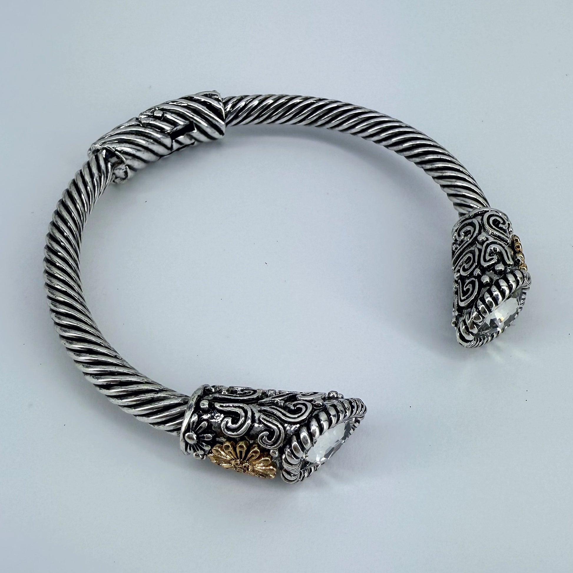 Cable Style Bangle Bracelet with Heart Rhinestone