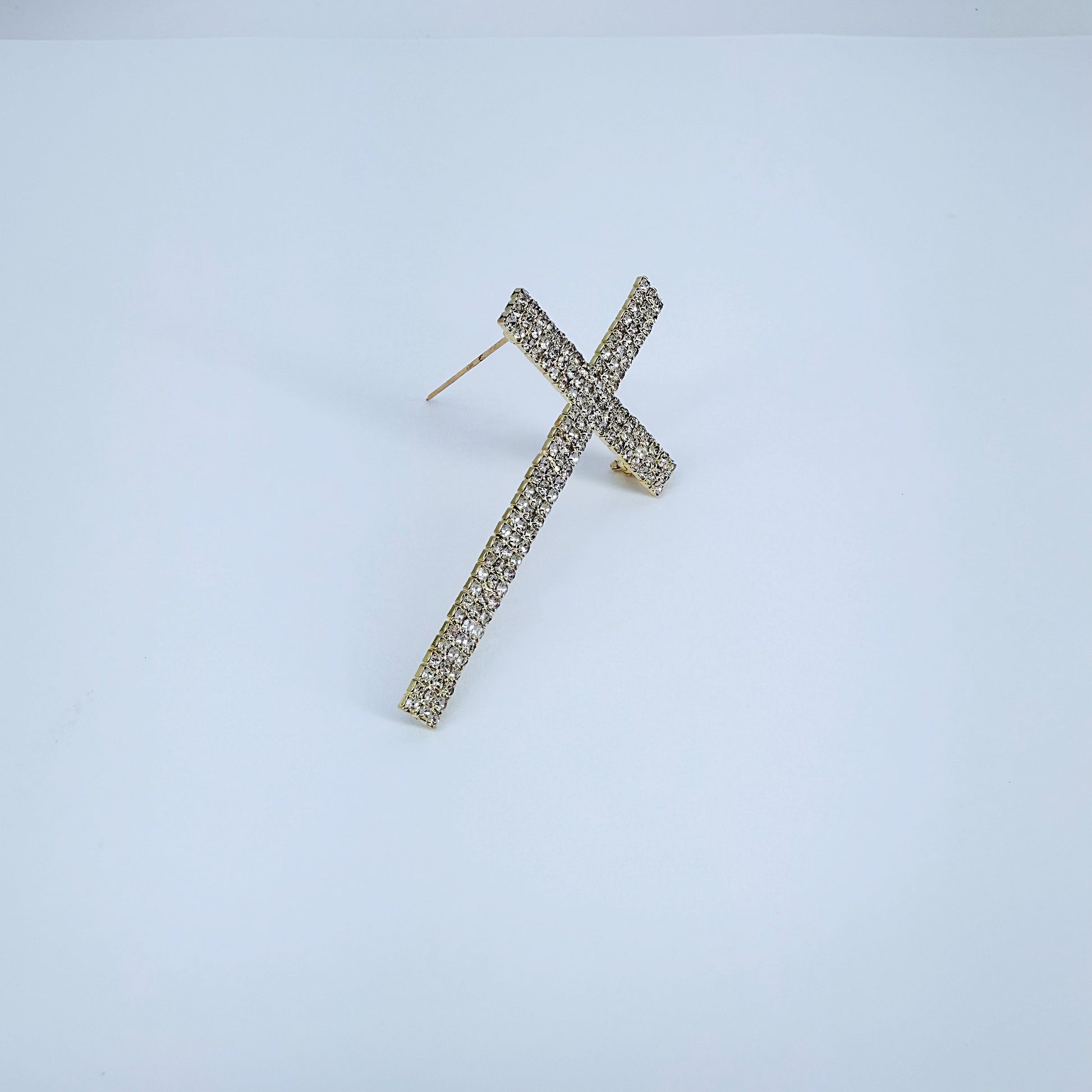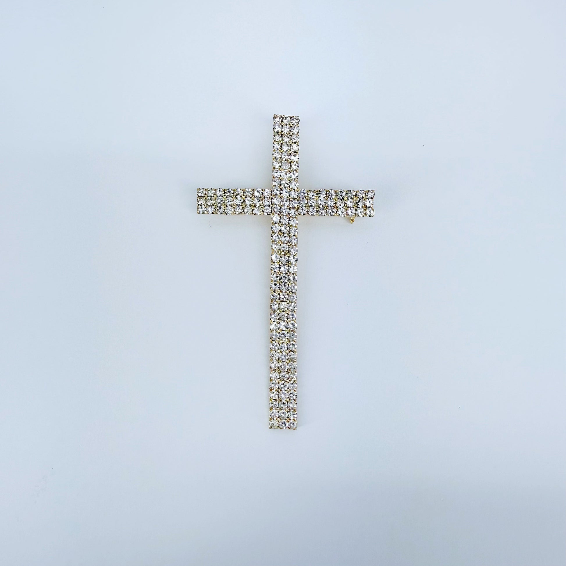 Gold or Silver Finish Cross design adorned with rhinestones Brooch